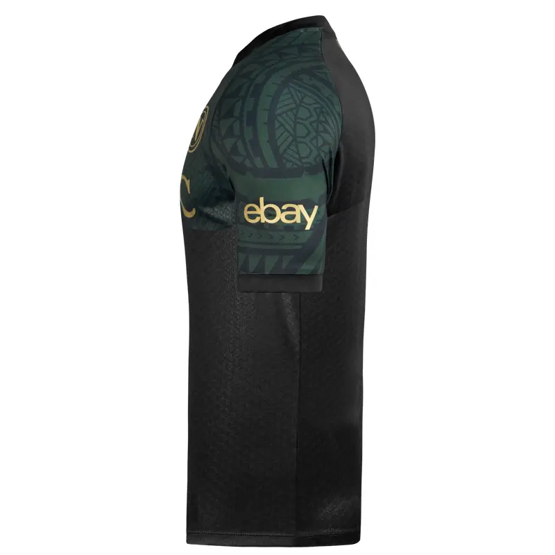 Das dritte EM-Trikot von EA7/SSC Napoli zeigt das Design verschiedener Maori-Tattoos in Dunkelgrün, Symbol für Einheit, Ausdauer, Stärke und Kraft.
