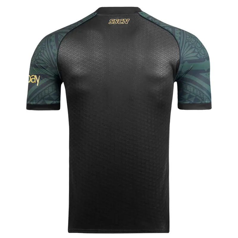 Das dritte EM-Trikot von EA7/SSC Napoli zeigt das Design verschiedener Maori-Tattoos in Dunkelgrün, Symbol für Einheit, Ausdauer, Stärke und Kraft.