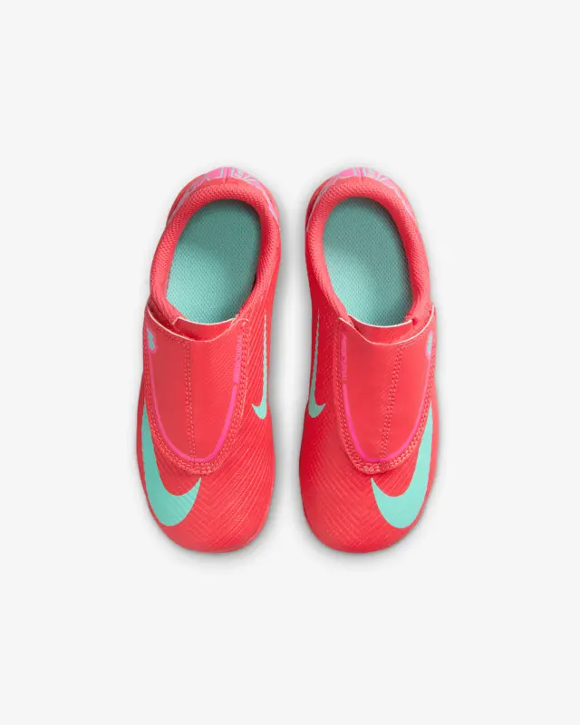 Egal, ob die Kids gerade erst anfangen oder einfach nur zum Spaß spielen wollen – mit diesem Schuh können sie gleich loslegen, ohne Kompromisse in Sachen Qualität einzugehen. Der Nike Jr. Vapor 16 ermöglicht den Kleinen, auf dem Platz richtig Gas zu geben und den Ball direkt ins Netz zu kicken. Es kommt noch besser: Man musst sie nicht binden! Der Klettverschlussriemen am Obermaterial bietet sicheren Halt. Los geht’s!