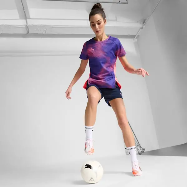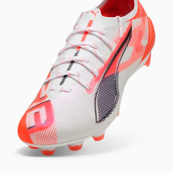 Wie schnell ist der ULTRA 5 ULTIMATE? Schnall dich an und entfessele deine Geschwindigkeit mit PUMAs ultimativem Fußballschuh, speziell für sie entwickelt. Mit SPEEDSYSTEM-Außensohle, FastTrax-Stollen und GripControl Pro-Obermaterial für unübertroffene Traktion und Kontrolle. Die Ortholite®-Fersendämpfung sorgt für sicheren und kraftvollen Halt bei jedem Schritt. Spiele schneller, fühle dich unaufhaltsam.