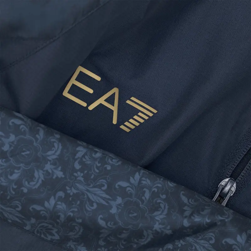 Inspiriert von den geometrischen Mustern des Bodenbelags des Königspalastes von Neapel, besticht sie durch ihr raffiniertes Grafikdesign und Vintage-Details, die einem Kleidungsstück mit modernem und unverwechselbarem Stil einen Retro-Touch verleihen. Die Marineblau- und Himmelblautöne verschmelzen zu einer eleganten und satten Farbpalette und unterstreichen sowohl die traditionellen Vereinsfarben als auch die raffinierte neapolitanische Ästhetik. Die Einlaufjacke bietet thermischen Komfort und Bewegungsfreiheit bei Teamausläufen und vor dem Spiel und verbindet sportliche Funktionalität mit anspruchsvollem Stil.