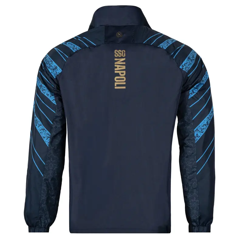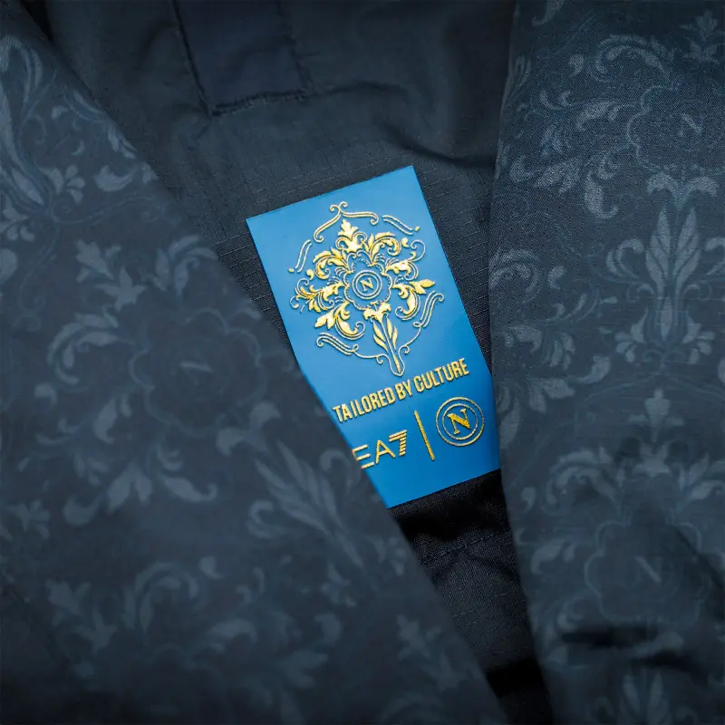 Die Einlaufjacke ist mehr als nur ein technisches Kleidungsstück. Sie ist ein Symbol des Stolzes, ein Statement der Identität und eine visuelle Hommage an die neapolitanische Kultur, die das Team auf und neben dem Spielfeld begleitet.