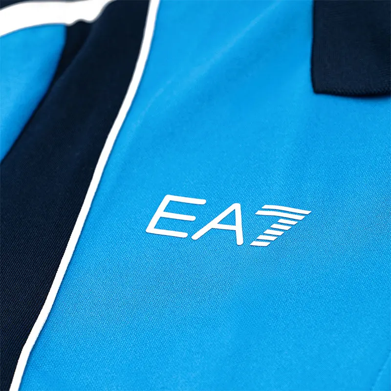 Gefertigt in einem tiefen Himmelblau, dem unverkennbaren Symbol Neapels, wird es durch dunkelblaue Streifen verziert, die die Silhouette elegant und dezent betonen. Silikonlogos verleihen ihm eine moderne, minimalistische Note, während der gerippte Baumwollkragen die für die neapolitanische Tradition typische Handwerkskunst und Liebe zum Detail widerspiegelt.