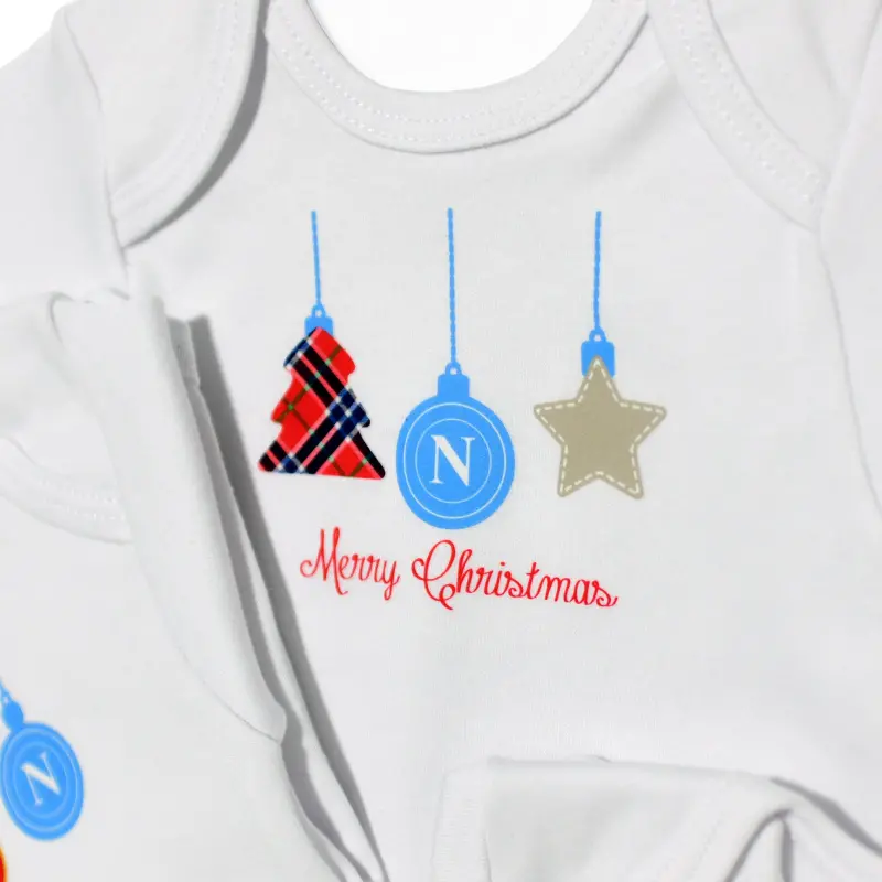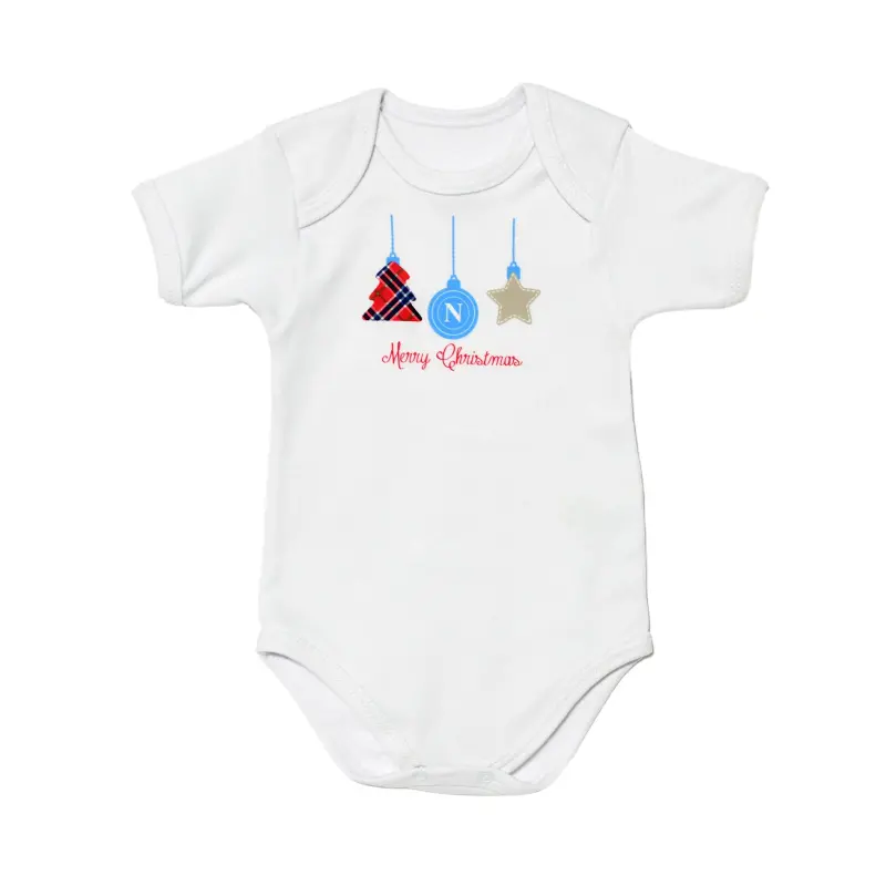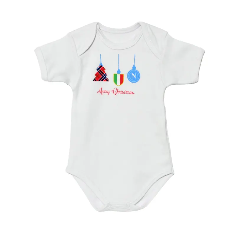 Jeder Body ist mit einem festlichen Weihnachtsbaum-Motiv und dem offiziellen SSC Napoli-Logo mit Meisterschaftsabzeichen auf der Brust verziert – ein echtes Symbol für Stolz und Leidenschaft für den italienischen Meister.