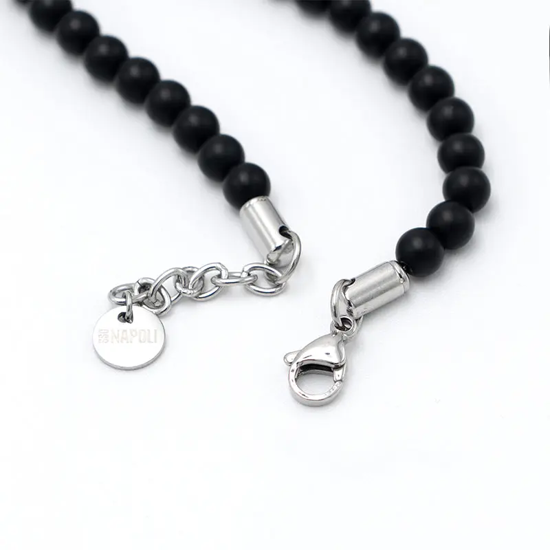 Feiern Sie den Sieg und die Leidenschaft für Napoli mit diesem exklusiven SSC Napoli-Armband mit schwarzen Steinen, verziert mit dem prestigeträchtigen Scudetto in den drei Farben und dem offiziellen Vereinslogo. Als Symbol für Erfolg, Stolz und Identität ist dieses Accessoire für echte Partenopei-Fans gemacht.