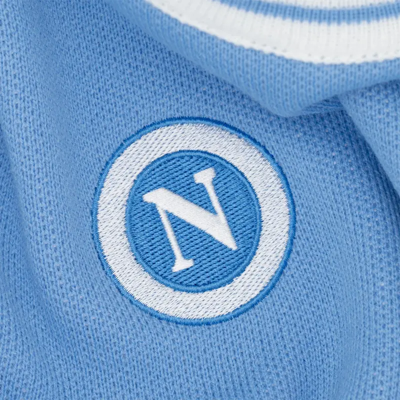 Der in klassischem Napoli-Blau gehaltene Pullover besticht durch sein klares und elegantes Design, das durch das SSC Napoli-Logo und den dreifarbigen Scudetto auf der Brust zusätzlich betont wird. Der markante weiße SSC Napoli-Schriftzug prangt stolz auf der Vorderseite, während die SSCN-Initialen auf der Rückseite einen unverwechselbaren und modernen Akzent setzen.