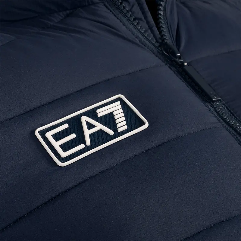 Sie ist in elegantem Blau gehalten und verfügt über einen praktischen durchgehenden Reißverschluss, der das Öffnen und Schließen in jeder Situation erleichtert. Auf der Vorderseite sind die Logos von SSC Napoli und EA7 sorgfältig gestickt und verleihen der Jacke einen Hauch von Klasse und zeigen sichtbaren sportlichen Stolz.