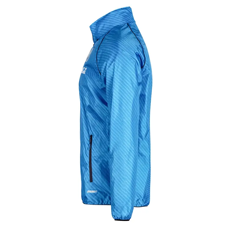 Die hellblaue Windjacke mit durchgehendem Reißverschluss des SSC Neapel für die Saison 2025/2026 ist ein Funktionskleidungsstück, das optimalen Schutz vor den Elementen bietet und gleichzeitig Komfort und Stil vereint.
