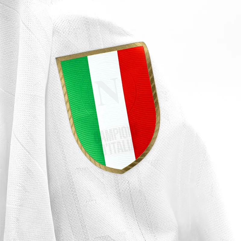 Das Auswärtstrikot der EM 2025/2026 verkörpert die perfekte Mischung aus Identität, maßgeschneiderter Eleganz und sportlichem Ehrgeiz. Der dreifarbige Scudetto auf der Brust ist mehr als nur ein Abzeichen – er ist das schlagende Herz eines Trikots, das den Sieg feiert und zuversichtlich in die neue Saison blickt.