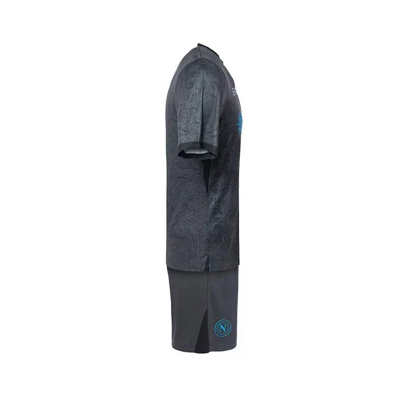 Das dritte Junioren-Set ist für die jungen Fans des SSC Neapel konzipiert und umfasst das Magnettrikot und die Shorts, beide aus Polyester. Das Trikot zeigt grafische Elemente, die von der japanischen Kultur inspiriert sind, wie das Katana und die Samurai-Maske, Symbole für Stärke und Beweglichkeit.