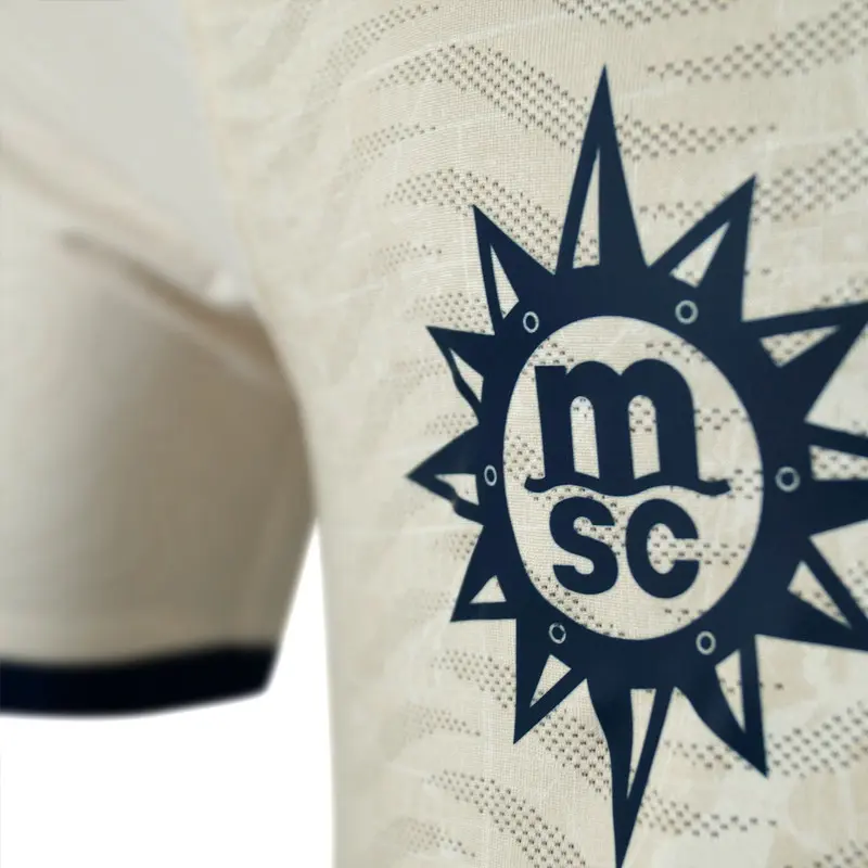 Das Trikot ist mit dem Element schlechthin jedes Seefahrers verziert, der Kompassrose.