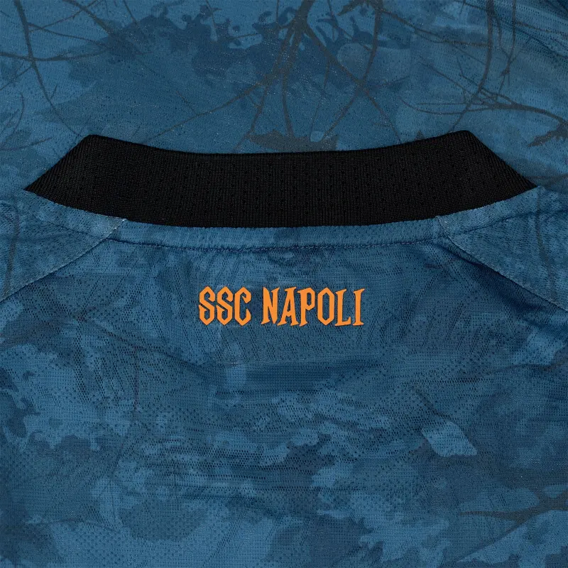 Das Halloween-Trikot des SSC Neapel für die Saison 2025/2026 besticht durch sein kühnes und originelles Design. Die Grafik ist vom geisterhaften Unterholz inspiriert, einem ikonischen Element, das mit den keltischen Wurzeln der Halloween-Tradition verbunden ist. Die tiefe, dunkle Grundfarbe erinnert an die Dunkelheit der Nacht, während leuchtend orangefarbene Akzente einen markanten Kontrast und visuelle Energie erzeugen.