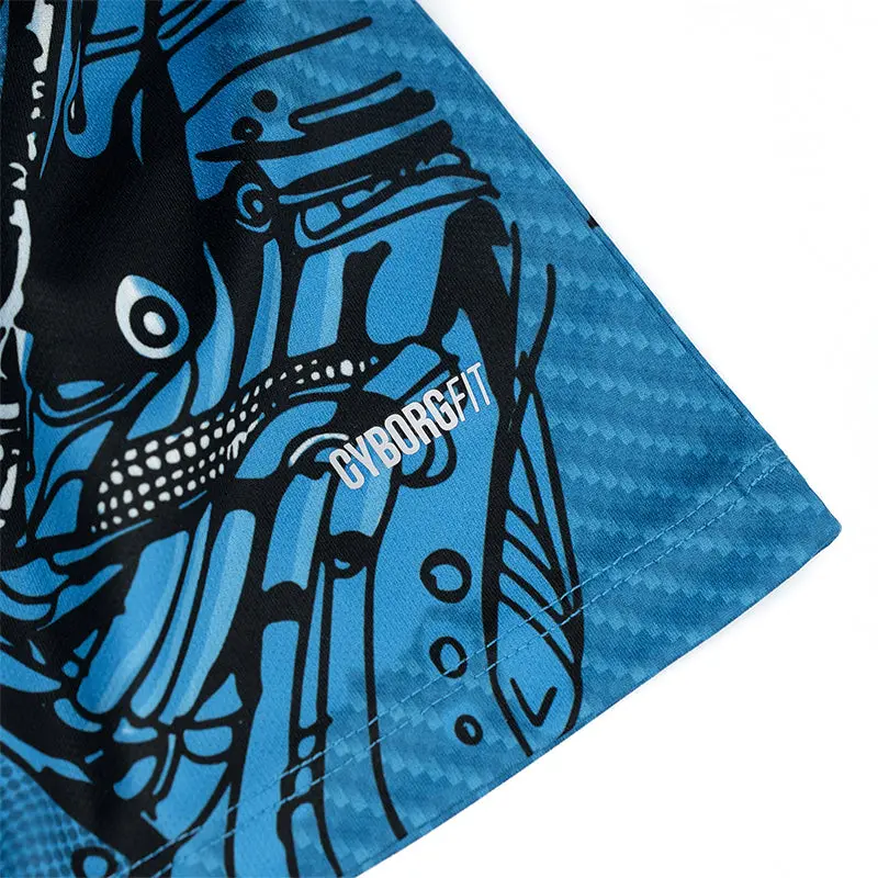 Im Zentrum des Designs steht die Cyborg-Effekt-Textur – ein Ton-in-Ton-Muster mit geometrischer Struktur, das an die segmentierten Metalllinien biomechanischer Rüstungen erinnert und dem Shirt einen markanten und innovativen Charakter verleiht. Dieses Muster vermittelt Geschwindigkeit, Kraft und Kontrolle – essenzielle Eigenschaften für den modernen Athleten.