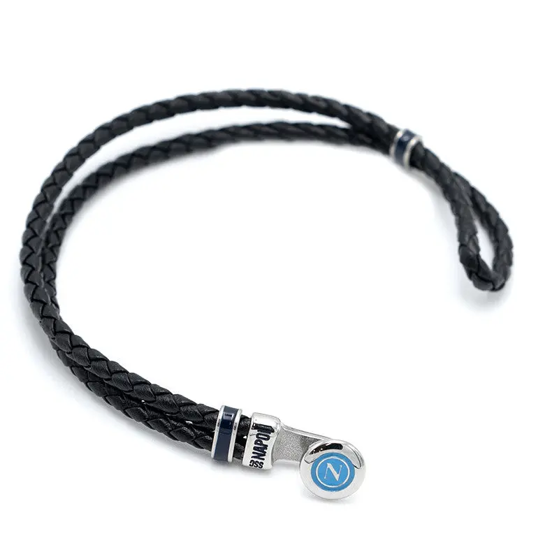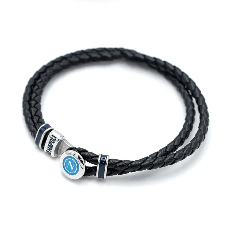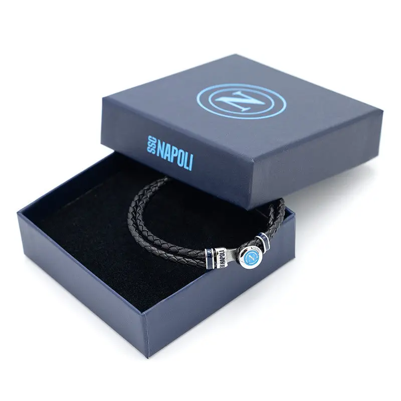 SSC Napoli Armband aus PU mit einer zentralen Platte aus 316L Edelstahl. Lasergraviertes Logo und zweifarbige Emaille.